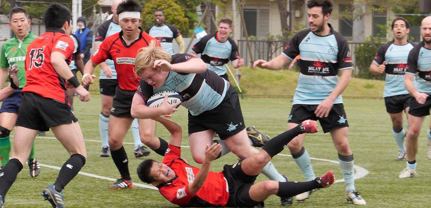by Matt Sparrow This week's opponents were Nippon Steel Ruggers. The day started off with fairly reasonable weather, albeit slightly overcast - the decent weather was not going to last though, because by the end of the game, we would be playing in what I genuinely thought was a full blown (forgive the pun) tai-fun. As this was the first game of our Tokyo Cup campaign since our relegation to the second division, the Crusaders were keen to put down a marker to show that our relegation was undeserved. Despite the early start everyone managed to show up on time, and we lined up for the somewhat over-officious Tokyo Cup pre-game inspection that the senior players are now all too familiar with. Having made sure that our nails were beautifully manicured and we weren't making the grievous offence of wearing non-navy, black or white undershorts, we were permitted to get underway. The Cru took advantage of the only positive of a ridiculously early start, which was having some space to warm-up, so we started the game ready to go. As such, it is surprising that Matthew Foster took so long to score his first try... 1 whole minute! Poor show! Matthew then managed to get his second try about ten minutes later with another storming run. This was followed with fairly evenly spaced tries from Neil, cutting through the back line on a nice angle, John Akiba with a quick tap and go, and finally Reece smashing through the defence. Neil had a solid kicking game with 4 out of 5 conversions going over, making the score at half-time 33-0 to the Cru. The second half brought more solid work from the Cru, as well as the debut of everyone's favourite Bavarian - Jacob Basiliyos, who was to be integral in the Crusaders defense of our precious clean sheet with some head-rattling tackles. The first try of the half was scored by Tomonori, coming into the back line from full-back to put it under the posts. Tomonori obviously enjoyed being back after being unable to play for a while, as he then proceeded to be the second Cru member to pick up a brace of tries (within three minutes of each other!). Travis Dixon then broke through the defense to score two tries, although quite honestly he looked disgusted at having to run over half the length of the pitch for his second try. The highlight of the second half was seeing the giant white arse of Matthew Foster as his boxers somehow managed to disintegrate in a tackle; he then had to play boxerless (and rather carefully - lest little Matt pop out to greet everyone) for the rest of the game. Unfortunately, Genta took a knock to the head and went off with a split eyebrow, devastating his future modelling career opportunities. Two consecutive yellow cards for high tackles reared their ugly head - one for NS Ruggers and our own Reece Morgan (is he actually tall enough to high-tackle anyone?) leaving both teams with just 14 players. Not to be disheartened, Luke Bradley scored the Crusaders final try of the game. For the remainder of the match we seemed to be pinned in our half, battling a determined NS Ruggers who were desperate not to get nilled. Some solid tackling from the Cru - particularly noteworthy were Jacob and Luke Bradley - ensured that we kept a clean sheet. Neil Howard kicked a further three conversions this half, leaving the score at the final whistle a convincing win of 64-0. A great start to the Tokyo Cup campaign. Our vote for the opposition MVP went to their No. 8 - Mr. Kotaro Ueda. Their vote went to our No. 10 - Travis Dixon who was presented with a bottle of wine (I have never seen him so happy!). Many thanks to our referee, Mr. Yoshioka and to our linesmen from Kameari RFC and Swift RFC. 321s were.... 5. Travis Dixon 4. Matthew Foster 3. Reece Morgan 2. John Akiba 1. Neil Howard A special thanks to those who came out to help with the Tokyo Cup duties: The Sideline Manager was Stewart Henwood. The Safety Assistant was Gen Hirano. The Record Keeper was Yuko Henwood. The Ballboys (and girl) were Frank Saffery, Mamoru Adachi, and Incha Robson. The Waterboys girls were Kaori Omori, and Sarah Hamm.